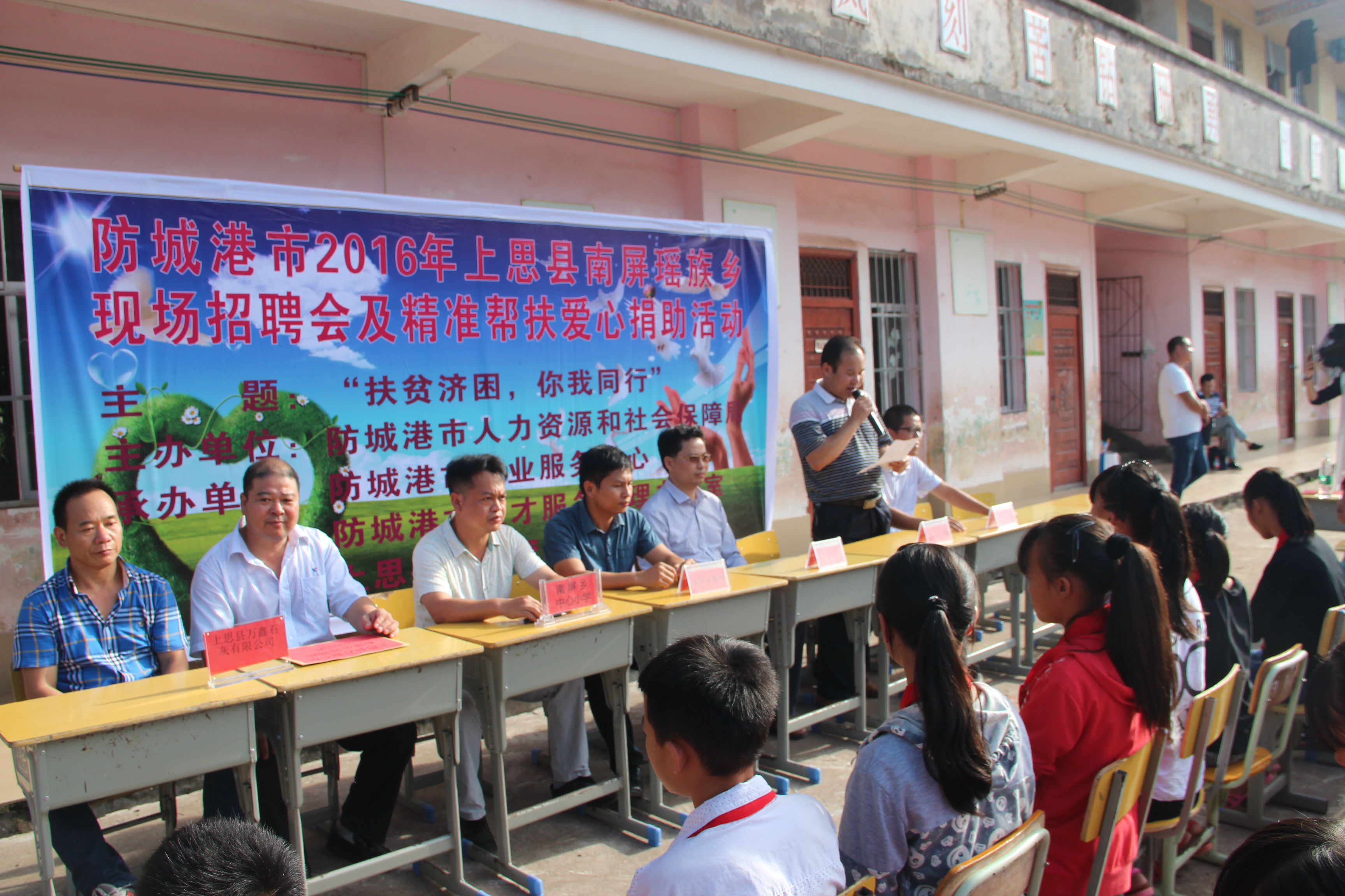 近日,我公司积极响应防城港市开展“扶贫日”系列活动,深入上思县南屏瑶族乡开展现场招聘会及精准帮扶爱心捐助活动。