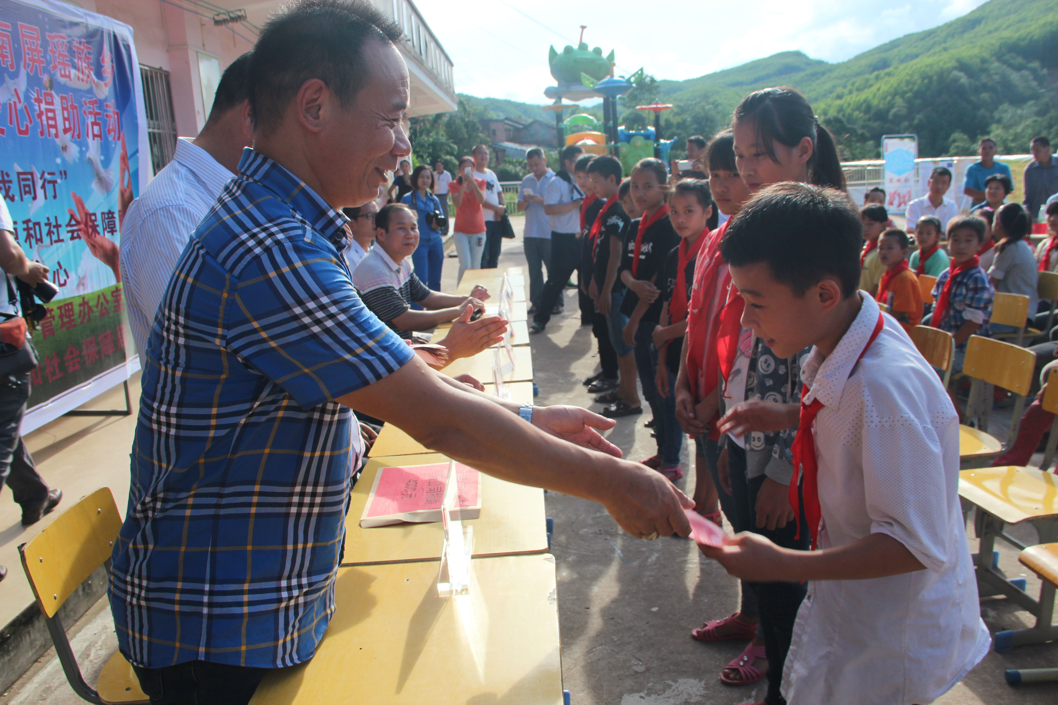 活动当天,该公司带着4000元爱心资助款与其他爱心企业在防城港市人力资源社会保障局的组织下,捐助南屏瑶族乡婆凡小学61名贫困生。